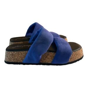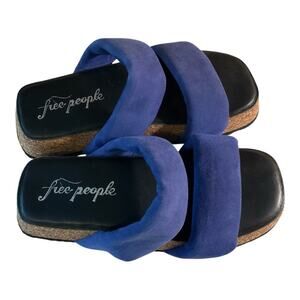 Experience the perfect blend of style and comfort with Free People's blue slide sandals. Featuring wide suede-like straps and a minimalist design, these sandals are ideal for warm weather outings. The black footbed and light-colored sole add a modern touch to this casual footwear.