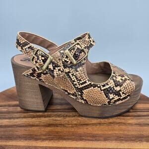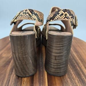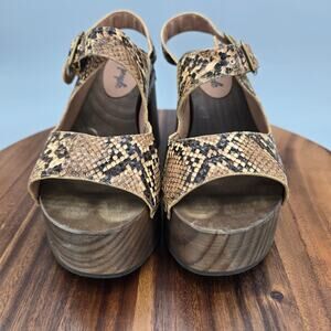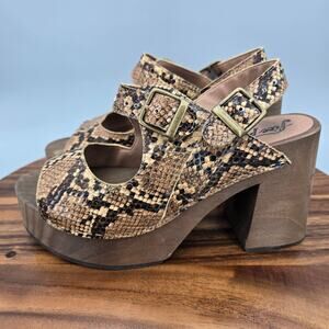 Free People Sandals Womens 6.5 37 Snake Print Leather Wooden Heel Platform Clogs