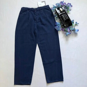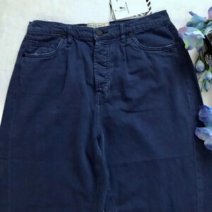 NWT. Navy High Waist Ankle Jeans Women Size 29. 5 buttons for closure, pleated front, has loops, 5 pockets design, tapered leg, adjustable tightener back, soft to touch. 89% Cotton, 11% Linen. Pictures are part of description.
