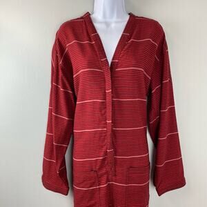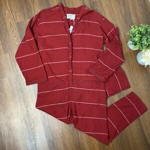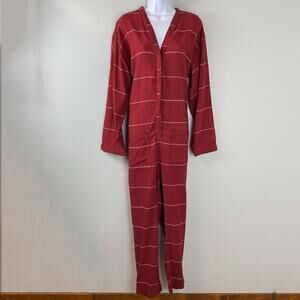 Free People Sandrine Rose Red Striped Long Sleeve Kimono Jumpsuit Large NEW