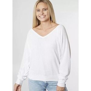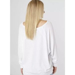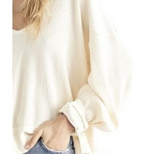 Free People Santa Clara Oversized V-neck Thermal Top White Sz M, NWT