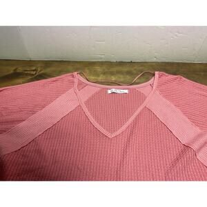 Free People Santa Clara Thermal Salmon Long Sleeve Top Size Medium Oversized