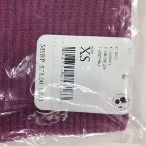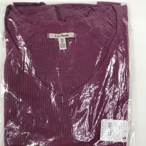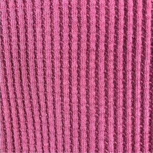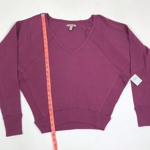 Color mulberry. Oversized slouchy fit. Contrast thermal /waffle stretchy knit fabrication. V neckline. Can wear of the shoulder. Raw seams.