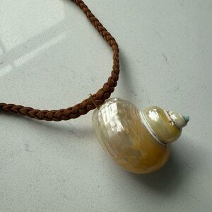 Totally timeless in a shore-inspired style, this stunning choker necklace features a staple braided chain with defined seashell pendant at center for a super nautical finish.