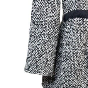 Free People Satellite Image gray swing hooded tweed wool-blend jacket. Drawstring at the waist. Oversized fit. One button in front. Jersey lining. 2 front pockets. Very good pre-owned condition with no stains or tears. Please see last picture for some normal wear on the sleeves.