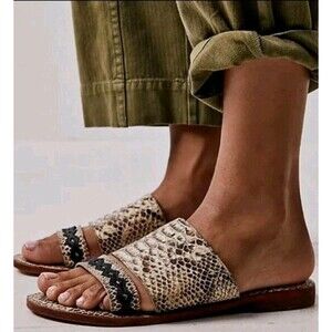 Free People Saturday Slide Snakeskin Print Flats Size US 7/EU 37.5 Beach Pool
