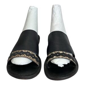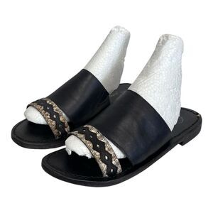 Free People | Saturday Two Strap Vamp Stacked Heel Slides Sandals 38 7.5