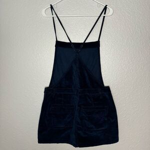 Free People Savannah Overall Mini Dress Size 8 Navy Velvet Pockets Boho Preppy