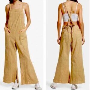 Free People Savannah Overalls Bib Wide Leg Khaki Tan Pockets Cotton Canvas XS