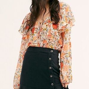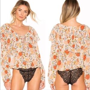 Free People Say It To Me Floral Bodysuit Long Sleeve Small Girly Feminine Bohemian Garden Gril Coquette Girl Flowers Girly Spring Cottagecore