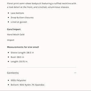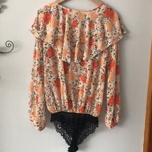 Worn twice. Hung to dry. This is in excellent like new condition. Well cared for. Extremely feminine. Light and airy. Perfect for Spring to Summer. Description is in the photos. I am here and happy to help with any questions you have. You will love this bodysuit. It’s so versatile and easy to wear. Dress it up or down. Smoke free home.