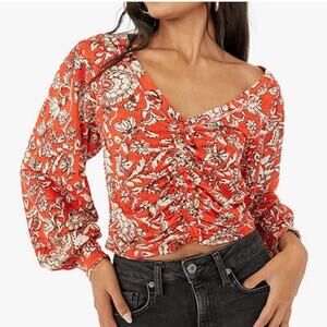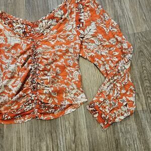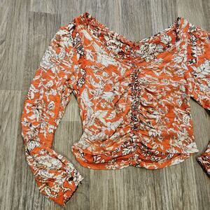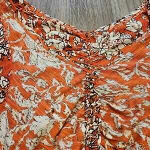 Free People Say The Word Floral Top Womens M Ruby Red Boho Ditsy Cottage Ruched