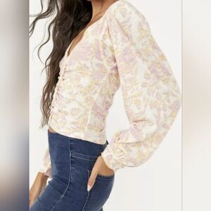 Free People Say The Word Top Blouse Size Extra Large XL Puff Sleeves Bohemian Peasant Style