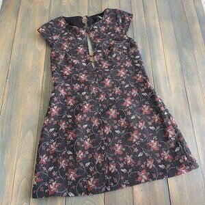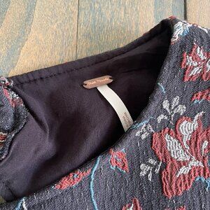 Free People Say Yes Floral Jacquard Mini Dress- Black Textured Size 12 (R8)