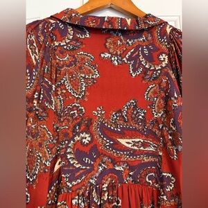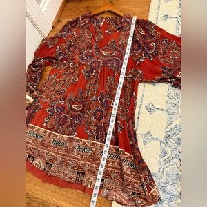Free People Say You Love Me Mini Dress M Orange Paisley Boho Long Sleeve