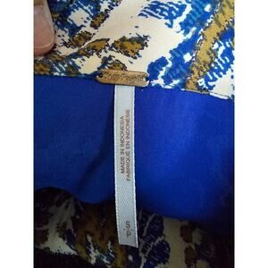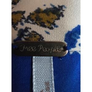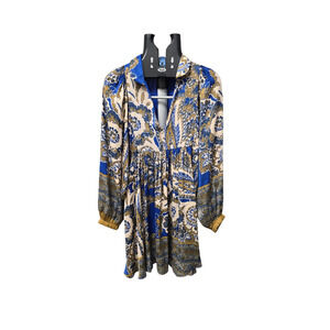 Free People "Say You Love Me" Mini Flowy Dress V Neck L/S Blue White Gold