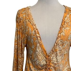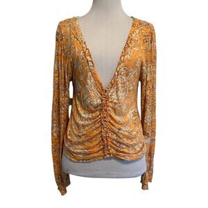 Free People Say the Word Cropped Top Womens Medium Peach Floral Ruched Modal