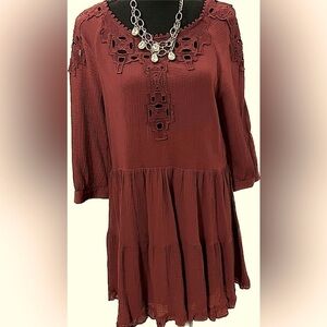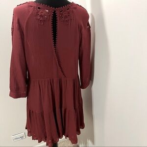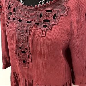 Free People Scarlet lace embroidered eyelet cotton boho mini dress. Peasant. M