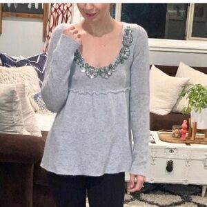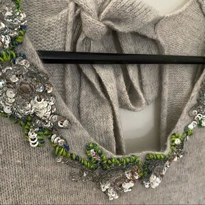 Free People Scoop Neck Wool Blend Embellished Open Tie Back Sweater Size L Gray