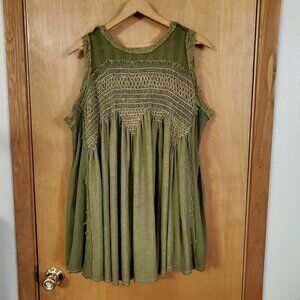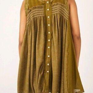 Free People Sea Breeze Smocked Tunic Sleeveless Green Womens XS EUC