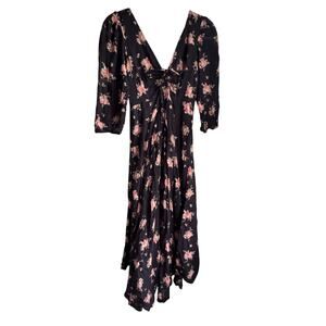 Free People Sea Glass Midi Dress Sweetheart Neckline Handkerchief Hem Boho