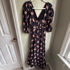 Boho, cottagecore, flowy, cotton, Floral, flower, puff sleeve, 3/4 sleeve, maxi