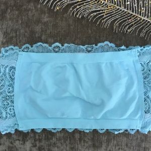 Beautiful Free People Seamless And Lace Reversible Bandeau Sheer Strapless Seafoam Bra