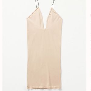 American made in Signature Seamless fabric, this slip features a plunging neckline and low scoop back. Bodycon silhouette fits tight to the body.