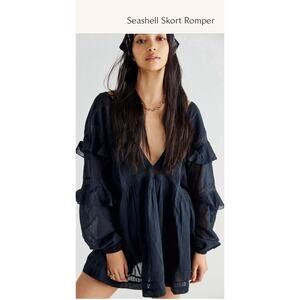 Free People Seashell Ruffle Sleeve Skort Romper Black EUC Sz XS