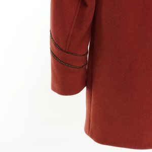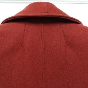Women’s wool coat, heavy winter jacket, maroon peacoat, gold accent, double-breasted, band, conductor, Free People Sedgewick, women’s size S jackets and coats, military, navy, naval