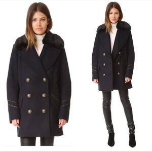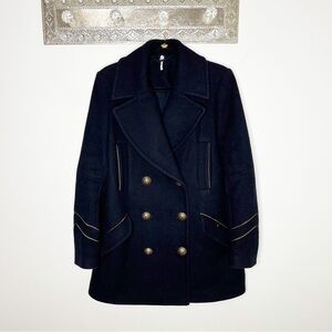 Free People Sedgwick Pea Coat Military Style Heavyweight Navy Blue Size Small