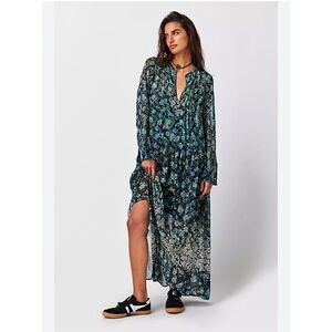 Printed to perfection in a forever femme, floral design, this effortlessly essential maxi dress features a button-front neckline, pleated bottom hem, and semi-sheer fabrication for added dimension.