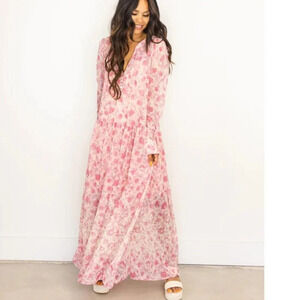 Free People See It Through Maxi Dress Pink Rose Combo NWT Size XS