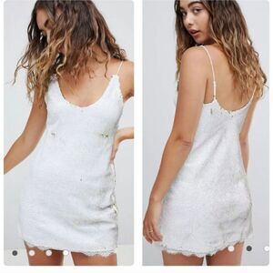 Free People Seeing Double Sequin Mini Dress in Ivory and Gold Size M