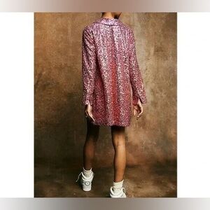 Shine bright in this so fun shirtdress featured in a shapeless mini silhouette with classic collar detail and stunning sequin-adorned fabrication for timeless style from season to season. Wear with sneakers or black tie!