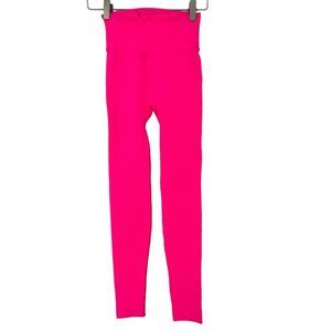 Free People Self-Hem Ecology Legging Tropical Pink Legging Size XS/S. New without Tags. Style OB843361. Retail $118. The Free People ecology legging in tropical pink is a hot neon pink active pant with a self-hem bottom so you can adjust to your ideal inseam. The perfect look for your next studio class, these Italian made seamless high rise leggings feature a customizable fit and slimming waistband that holds shape no matter what. Breathable cutouts throughout the legs add a cool fashion element while keeping you cool and comfortable. A seamless legging from FP Movement that will never loose it's shape.