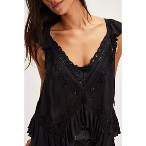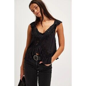 Free People Sensual Cassidy Cutwork Blouse Tank Top Embroidered Black L 283343