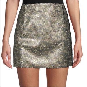 Free People Skinny Sequin Camo Mini Skirt. Size 0. In good preowned condition. No stains or holes. The sequins are Camo print but change to black when you rub your hands against it. Very fun. Soft leather waistband. Fully lined. Waist measures 28 inches. Total length 15 inches. Comes from a smoke free home.