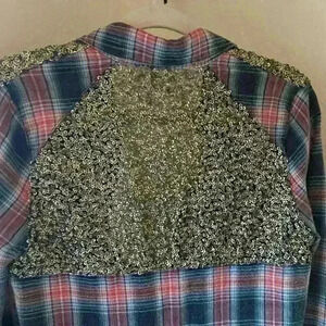 Free People Sequin Bling Button Down Flannel Top. Sz XS. In excellent condition