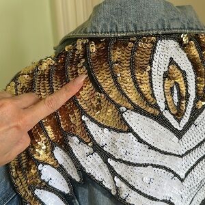 Free People Sequin Glam Denim Jacket in Indigo Blue Size Small