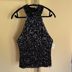 Sparkling sequin halter top in black and silver. Perfect for a night out. New with tags.