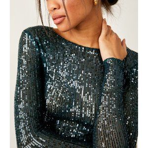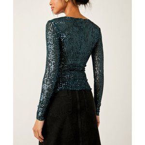 Free People Sequin Long Sleeve Top - Teal