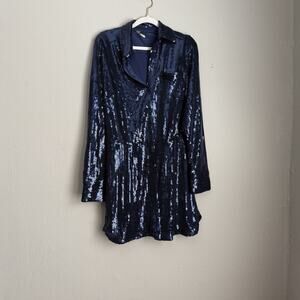 Free People Sequin Mini Dress Sophie Navy Snap Front Collared Shirt Size Small