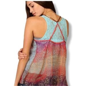 Free People Sequin Summer Lace Bright Tank Top L Boho Colorful Festival