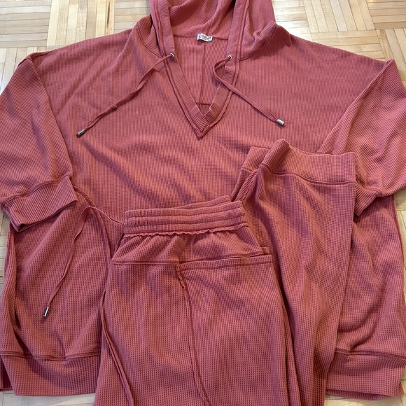 brand new never worn!!! Cozy clay hooded loungewear set with drawstring details. Perfect for relaxing at home. Free People.