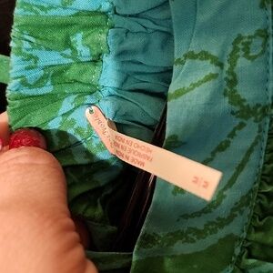 Stylish halter top with a vibrant green and blue pattern with matchin layered skirt . Perfect for summer , cruises, vacations absolutely beautiful set original tags never worn. originally 148!!