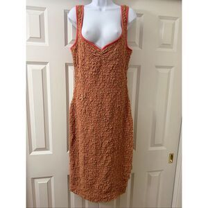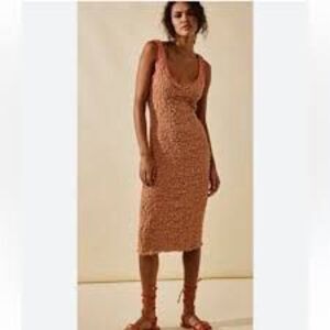Free People Set The Bar Slim Smocked Midi Summer Dress, Brown