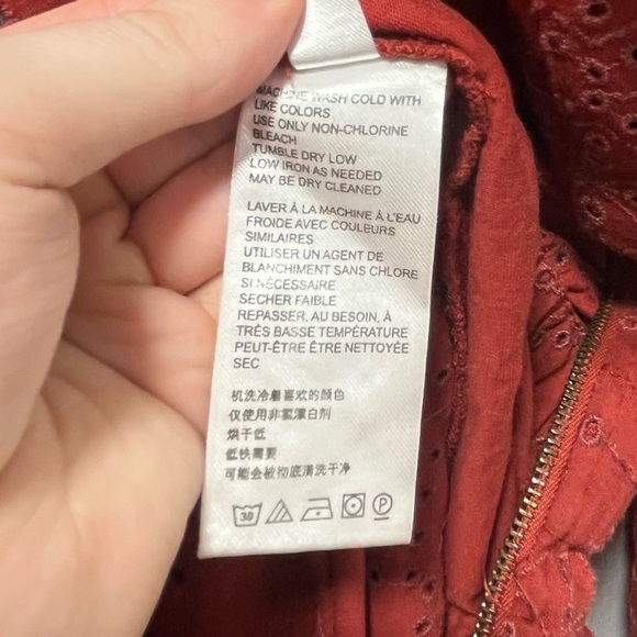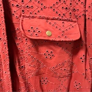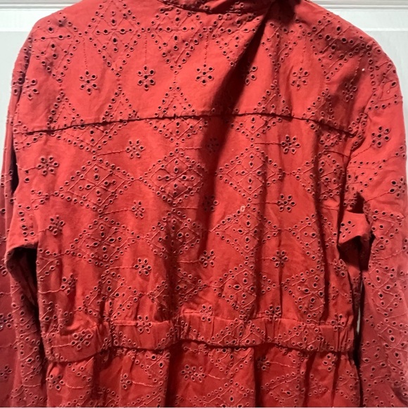 Free People Set the Tone Eyelet Jumpsuit Rust Embroidered Full Zip Fitted Red 8