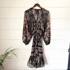 Free People Seven Wonders Black and Pink Floral Mini Dress