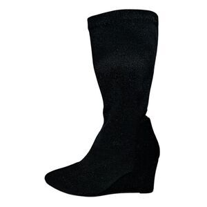 ▪︎Sparkly and shine in this stretch boots featuring a wedge heel and rounded toe. Meant to be worn slouchy.